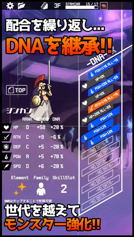 どのモンスターを配合させるか、どのDNAを遺伝させるか、どのスキルを遺伝させるか...考える要素は無限大!!
