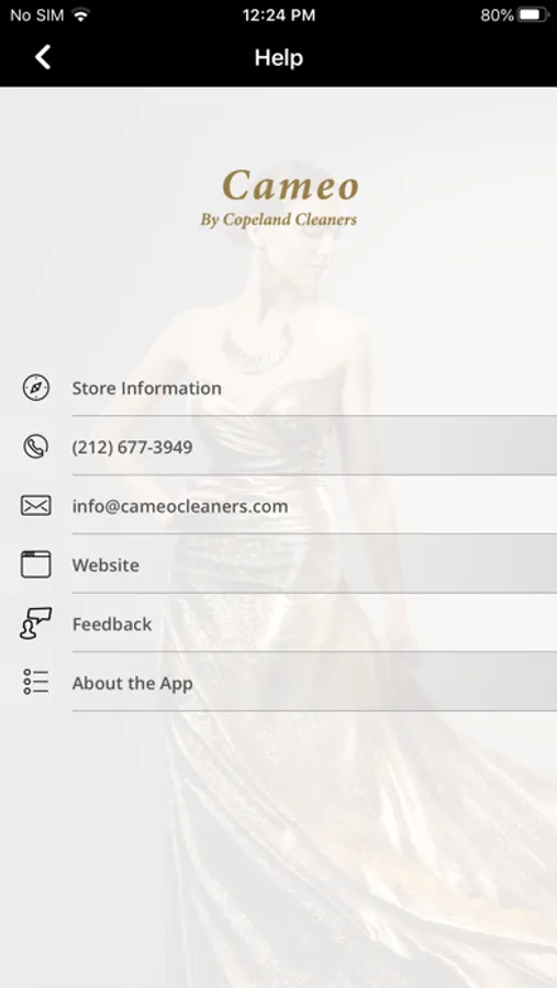 5) Quickly contact Cameo By Copeland Cleaners by phone or email and access their website all directly from your device.