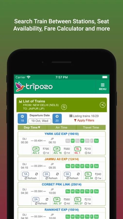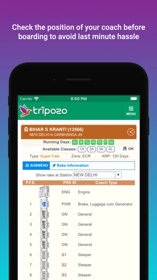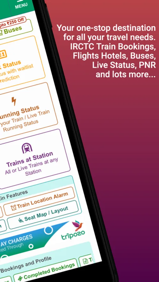 Ensure the availability of all trains in a single tap. A advanced view of running status with historical NTES train enquiry data is also at your fingertips. This app has all the information that a traveler would ever need.