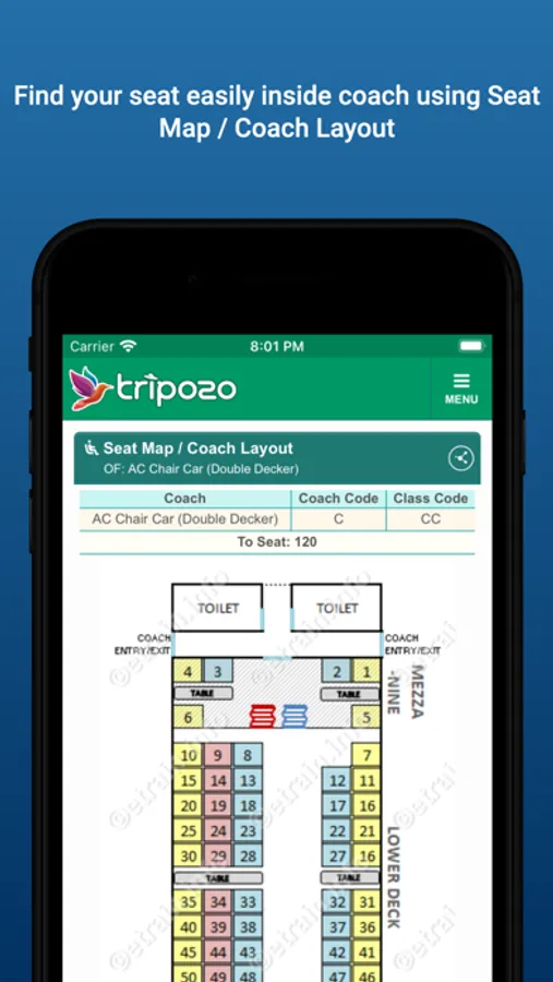 - Seat Map / Coach Layout