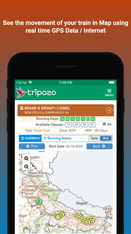 - Route Map of Running Train