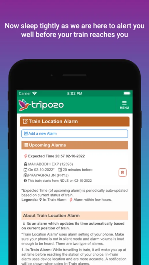 - Train Location Alarm / Wake-up Alarm (In-Train / Off-Train)