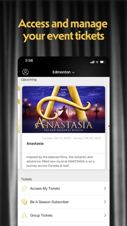 Broadway Across Canada is delighted to launch the Broadway Across Canada app for our Touring Broadway theatre fans. With aid of the app, BAC ticket holders can link their Ticketmaster account for easy mobile contactless entry at the theatre. Users can manage their Broadway Across Canada orders, see upcoming show dates and find important links all at their finger tips to make their theatre experience seamless. BAC subscribers can now effortlessly purchase additional tickets, make an exchange, upgrade seats and more all on their phones.