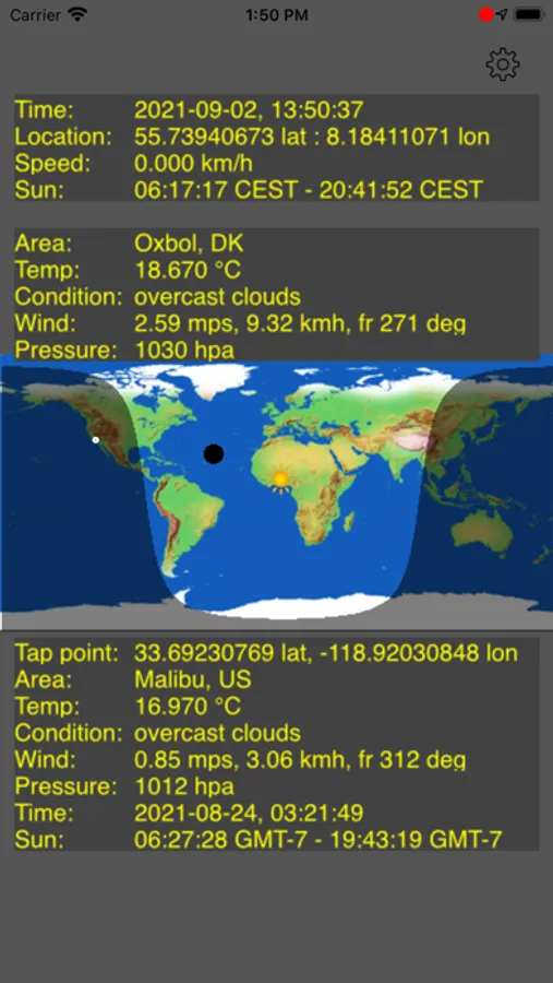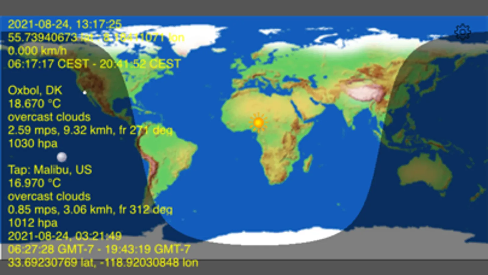 sunClock App: to see night shade on an equirectangular-projection of a world map. Additionally the app provides location data as sunrise and sunset as well as weather data. Therefore the app needs a location GPS access. The location data will not be used for any other purpose.