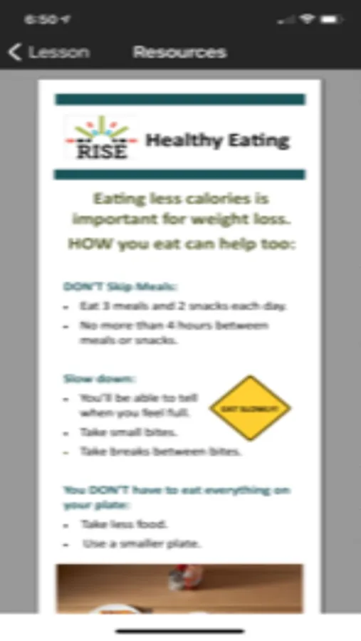 RISE is a wellness app designed with innovative ways to help people lose weight. The 52-week program focuses on healthy eating, exercise, and behavior change with personalized feedback and motivational tools. RISE includes multimedia lessons, recipes, resources, and social support. Users connect their Fitbit account to RISE. HealthKit is integrated with RISE to allow access to users’ health data such as weight, exercise, and nutrition from Fitbit and allow for weekly tailored progress graphs. Users do not directly interact with the HealthKit app and are made aware that their data is being collected through the application with the provision to opt-out.