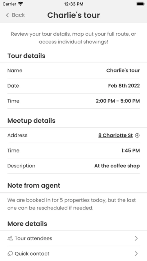 With Ettie’s tour feature, agents and clients can seamlessly arrange showings, record notes/photos/voice recordings, leave reviews and invite their family and friends to follow or join their tour. Get all your tour information in one place and updated in real time!