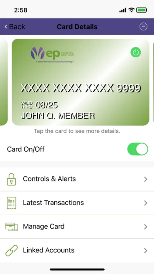 Use EPFCU's CardControl app to easily manage your EPFCU debit and credit cards. Turn your cards on and off instantly from your mobile device. Control, where, when and how your cards are used. Get real-time alerts. Stop fraudulent activity before it happens. And much more!
