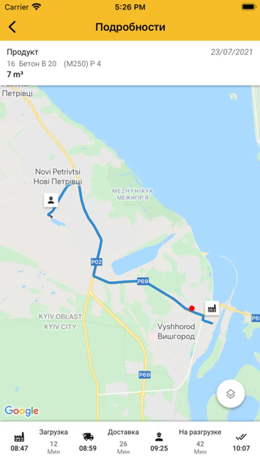 Мобільний додаток "Каскад Бетон" надае можливість відслідковування бетонних сумішей в режимі онлайн та отримувати інформацію про стан їхньої доставки.