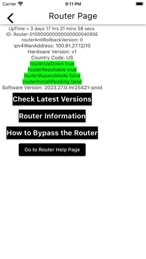 The Router/Wi-Fi page includes a test of the connection between the app and the router, display status of Uptime, and Wi-Fi software & firmware versions. Detailed instructions on how to use your own router are also included.