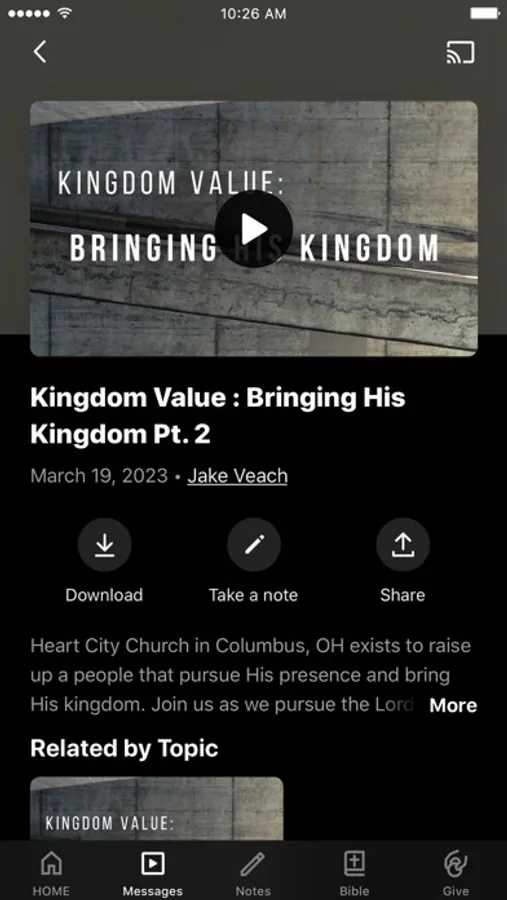 This app will help you stay connected with the day-to-day life of our church. With this app you can: watch or listen to past messages; stay up to date with push notifications; share your favorite messages via Facebook, or email; and download messages for offline listening.