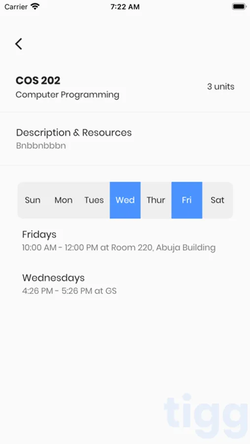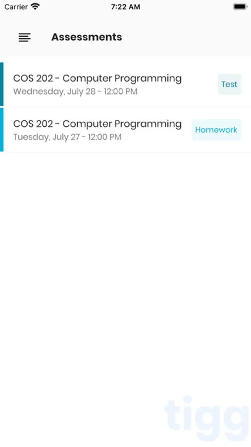 Tigg is a class aid, designed for students in the tertiary institutions. With the app, students have ready access to their Lecture timetables, Courses, Assessments, realtime announcements and many more.