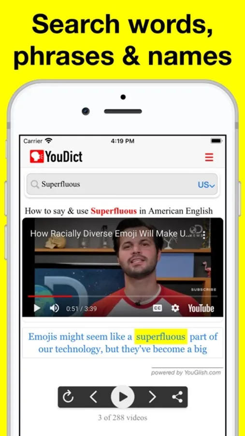 You can now search billions of video captions for words, expressions & even names. Hear native speakers say them so you can start using them with 100% confidence!