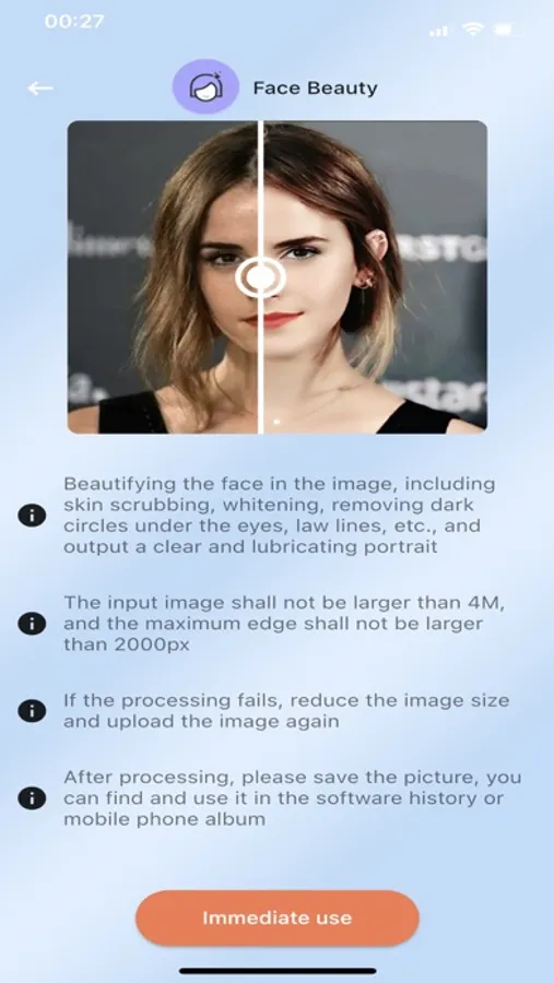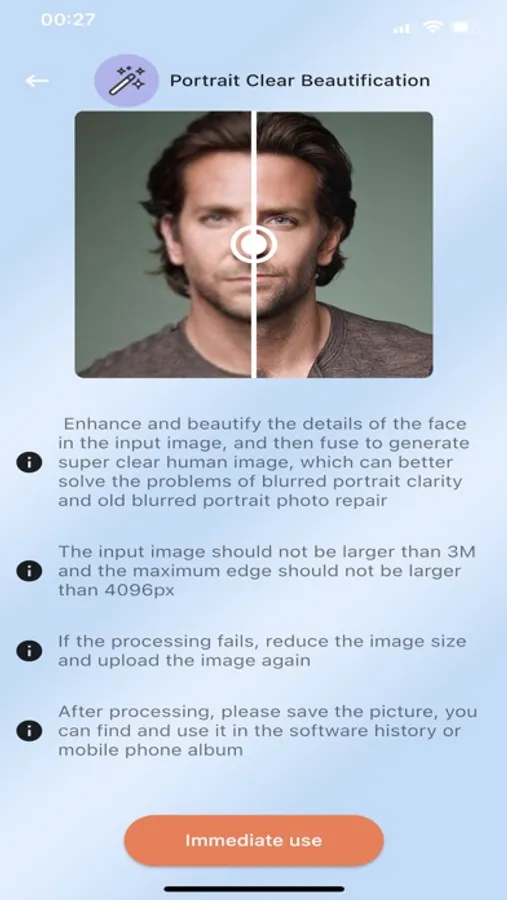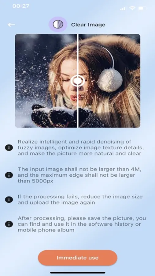 ClearAi Photo enhancer uses the world's most advanced artificial intelligence technology to repair blurry photos, repair, enhance and beautify all blurred, flawed photos, improve picture clarity, restore picture quality, create certificate photos, perfectly reproduce photos in ultra high definition, give them new vitality with super clear and HD picture quality, Make your face instantly full of amazing charm.