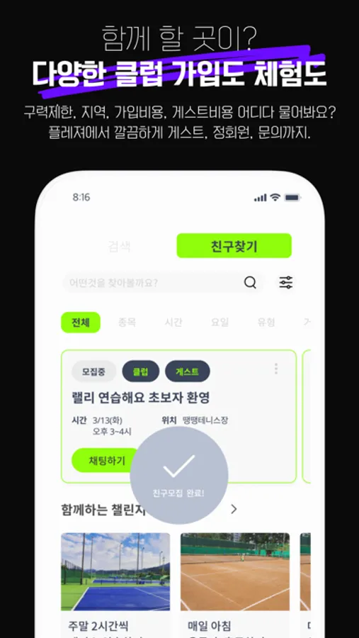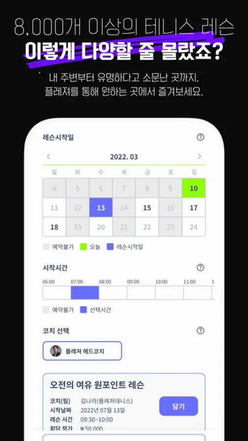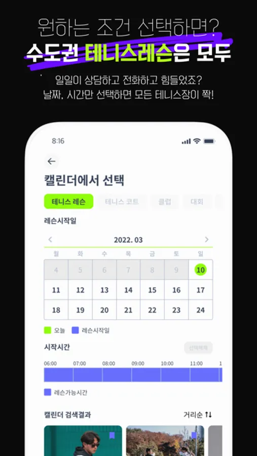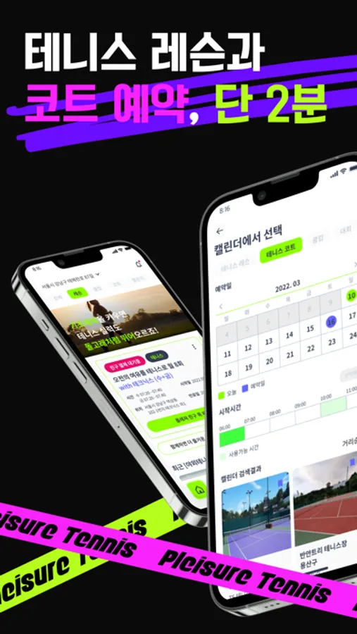 테니스 레슨부터 코트 예약까지, 단 2분.