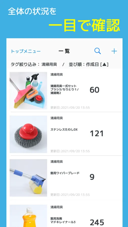 使いやすい項目だけの一目でわかる在庫管理ができます。