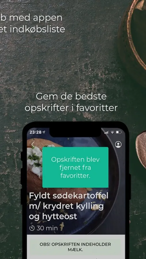 - Sammensæt dine egne madplaner ud fra alle opskrifter med tilhørende automatiske afkrydselige indkøbslister