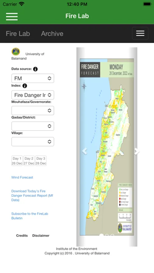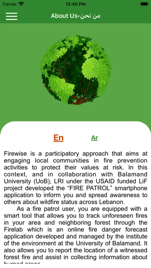 Fire Patrol is a mobile application that has a forecast tool for fire danger in Lebanon allowing users to report any fire incident in his/her area in addition to the ability of reporting a burnt area so it can be registered and scheduled for rehabilitation.