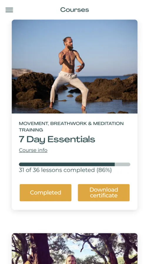 The courses consist of high-quality videos recorded in wonderful secluded locations in nature. Besides the video courses the app offers audio sessions for relaxation, healing and meditation.