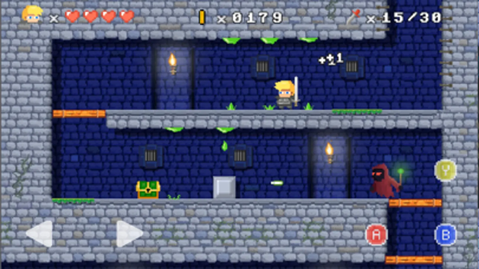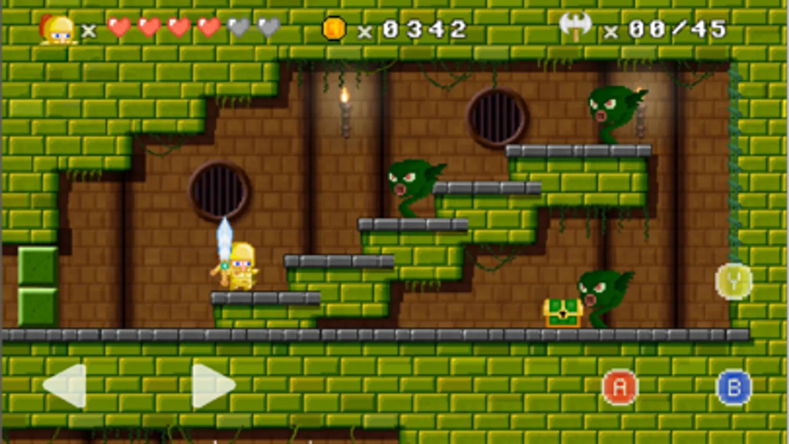 Fighting enemies, avoiding obstacles, discovering secrets, jumping over walls, double jumping, swimming in water areas, flying in a balloon, swinging between vines, jumping between mining carts and opening walls or clearing closed rooms full of enemies are part of the variety of mechanics that you will find throughout your adventure in this pixel art game. For this you will find the best touch controls you have ever seen in a mobile game.