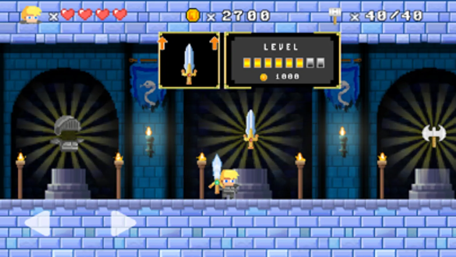 Arcadia is a kingdom full of secrets, to find them you will have to hit its walls, some of them are breakable, you will find weapons, coins and extra life, but you must also find the 20 secrets that hides this adventure throughout its journey.