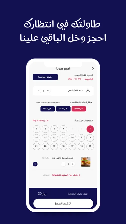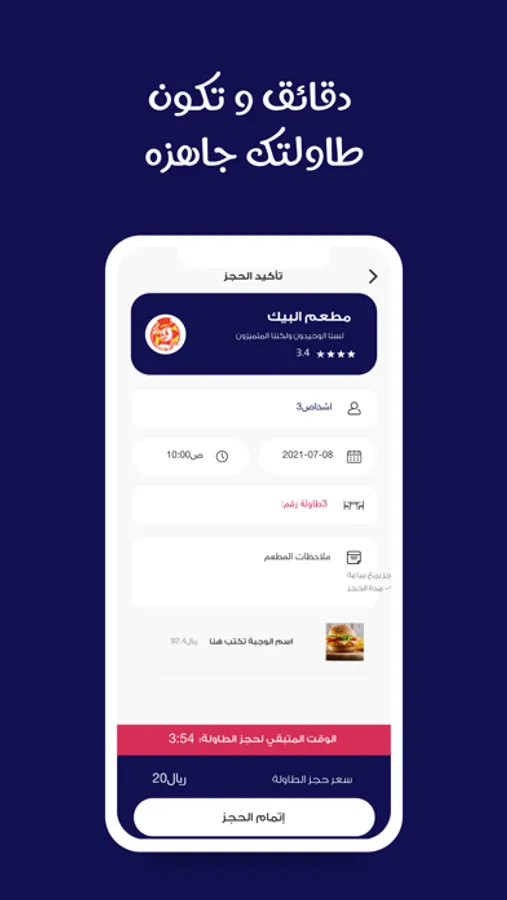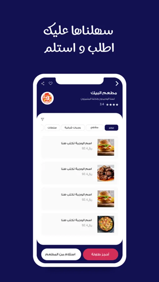 سهلناها عليك جهزنا تطبيق يحاكي خدماتك ويحفظ وقتك من خلال استلام الطلب او حجز طاوله (محلي) مسبق فكرتنا هي نقل الخدمات اللوجستيه الى الكترونيه من خلال توفير الحجز المحلي و استلام من المحل ايضا اختيار الوجبه المفضله قبل الوصل لتقليص وقت الانتظار المسبق للطلبات في المطاعم و الكافيهات او الانتظار حتى وصول الطلب