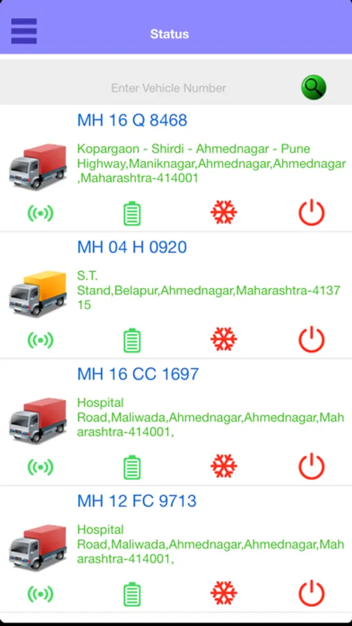 2. After Successfully login user can view their vehicles status that includes (Running, Stop, Ideal, Disconnected).