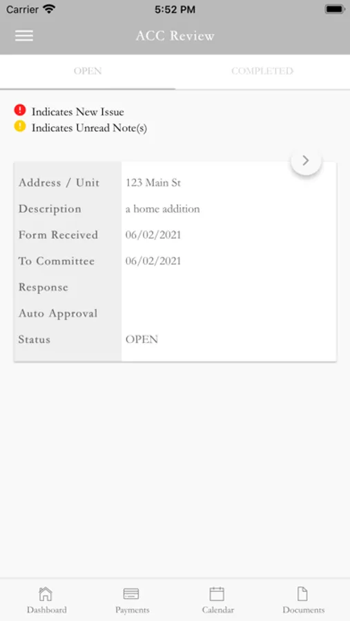 · Work Orders (Accessible if association is responsible for unit maintenance): Submit, check the status, add comments and add pictures