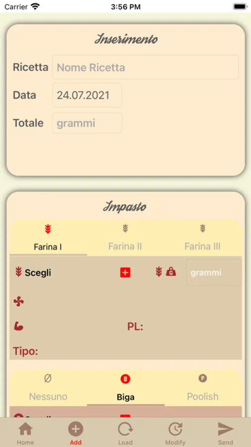 Con Wheateasy puoi creare il tuo archivio di ricette per pane, pizze e focacce. Aggiungi al tuo archivio le tue farine preferite, il lievito, l'acqua e tanti altri ingredienti che potrai comodamente richiamare in tutte le tue creazioni. Realizzare e modificare le tue ricette in pochi passaggi.