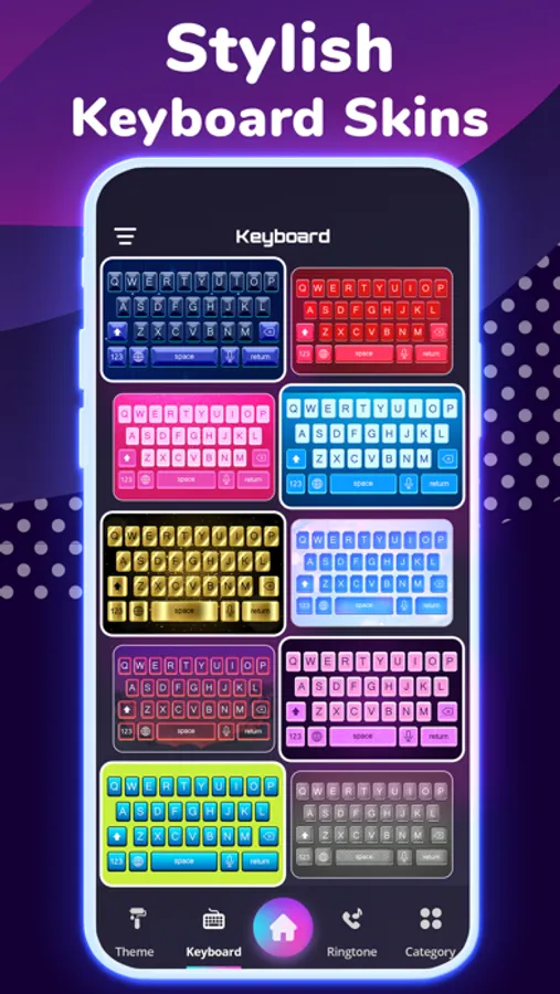 Fancy keyboard is a beautiful & creative application to decorate your mobile text keypad more stylish and attractive. 100+ integrated colorful & LED lighting keyboard skin & themes and adding more periodically.