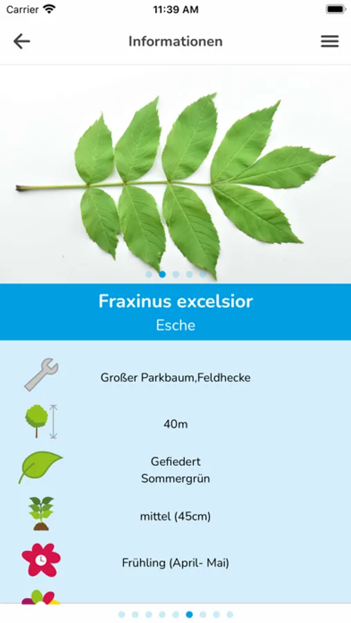 Beispielsweiße der deutsche Name, der botanische Name, die Verwendung, Blütefarbe und viele weitere, nützliche Informationen.