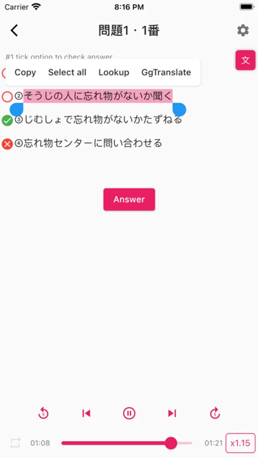 Help you practice JLPT N2 with the listening section of previous years. Includes answers and scripts.