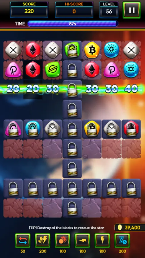 Plan your moves by matching 3 or more coins in a row, using power-ups and boosters wisely in order to win!