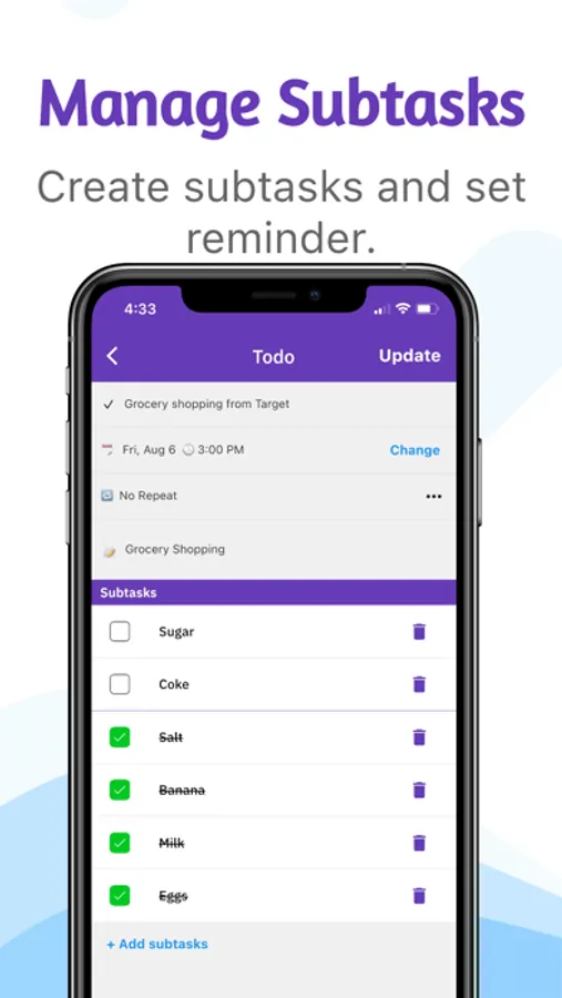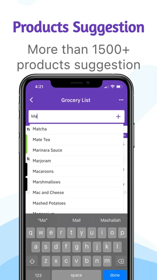 - Quickly add items to your to your list by tapping on the auto suggestions.