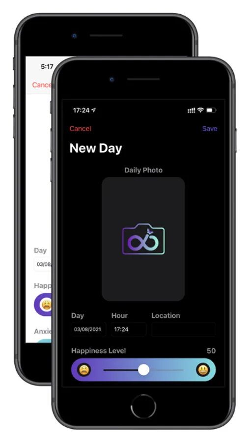 With MyTamorphosis you can keep track of your internal and external changes by filling in a simple questionnaire and a photo daily. As a result, you'll be able to see the changes graphically in the timeline session or through photos in the Changes session. Simple and quick, your metamorphosis has already begun.