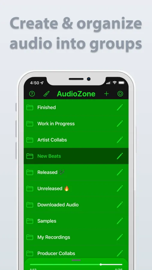 Import audio from your email, messages, notes, files, voice memos, airdrop and more! Easily organize them into groups; queue and play them in an elegant and familiar music library environment! Playback control works with CarPlay, bluetooth devices, control center, and the in-app player.