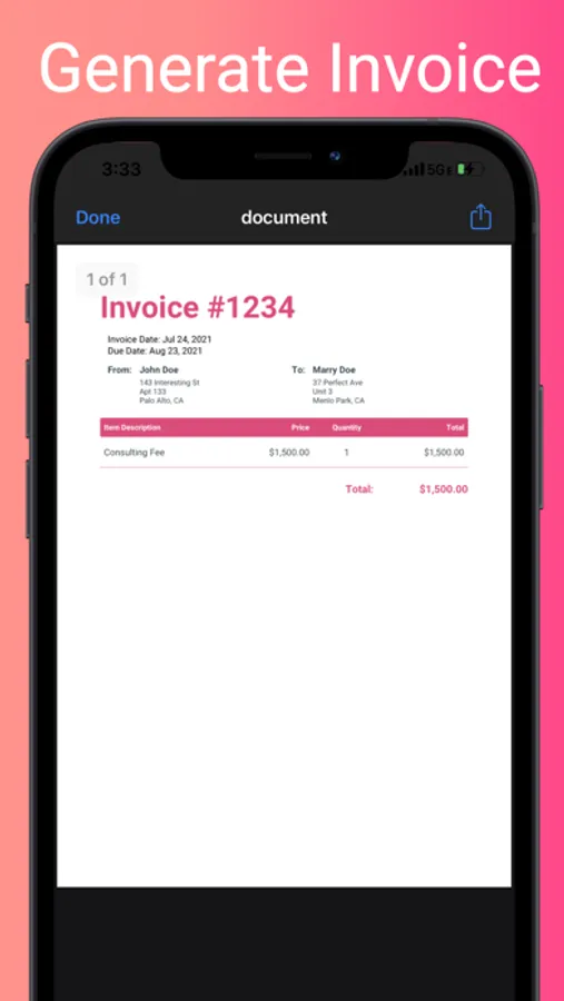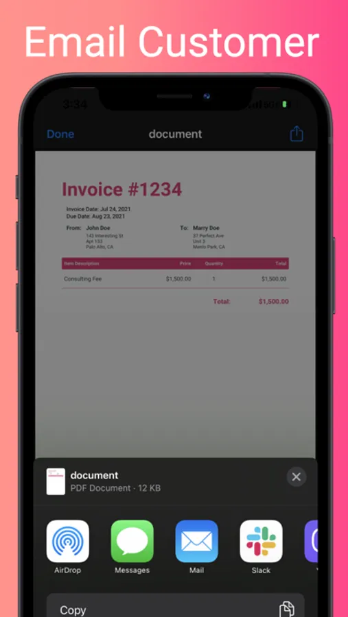 The application will generate a PDF of your Invoice that you can then share with your client.