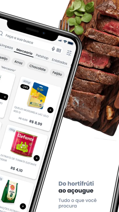 O aplicativo Mercado Vila Nova oferece um amplo conjunto de funcionalidades com um visual moderno e intuitivo.