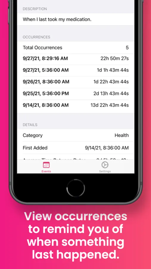 Timesense is an app dedicated to answering the age-old question of "when was the last time I did that?". It helps answer this by allowing you to enter in events or milestones, such as "Took Medication" or "Went to the Grocery Store". After entering an event, you can add individual occurrences of those events at a specific date and time. By keeping track of these occurrences, it can help you visualize how often you do something. It can also help you adhere to schedules, such as if you need to take medications at specific time intervals. This will help you improve your life, sharpen your memory, and keep track of your life.