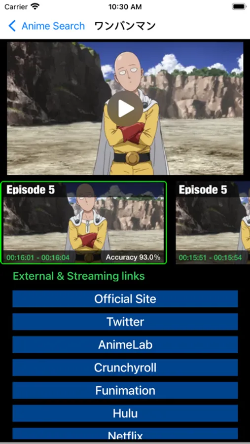 - After show you what's anime, the app will help you find that anime on the most popular platform like: Youtube, Amazon, Netflix, Bilibili, Crunchyroll, etc (depending on your country). And the app will also manage the searching history.