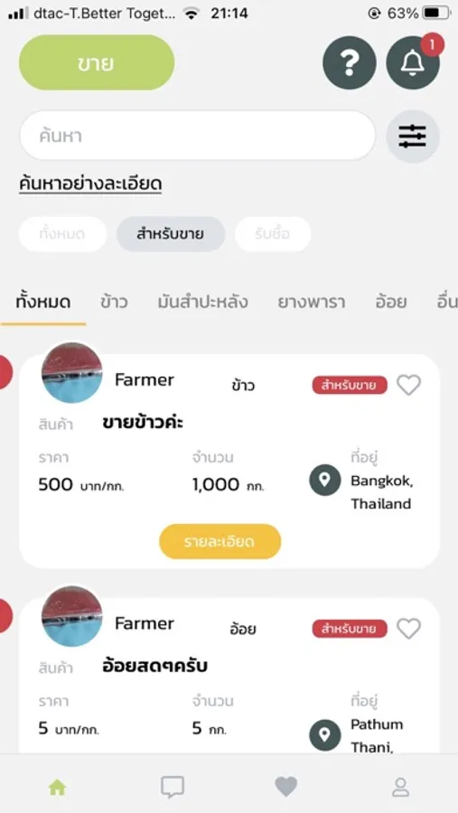 ผู้ขาย สามารถขายสินค้าทางการเกษตรออนไลน์ได้ฟรี! ไม่ต้องผ่านคนกลาง กำหนดราคาสินค้าเองได้ ไม่ต้องเสียค่าคอมมิชชั่น ส่งสินค้าตรงหาผู้ซื้อได้เลย!