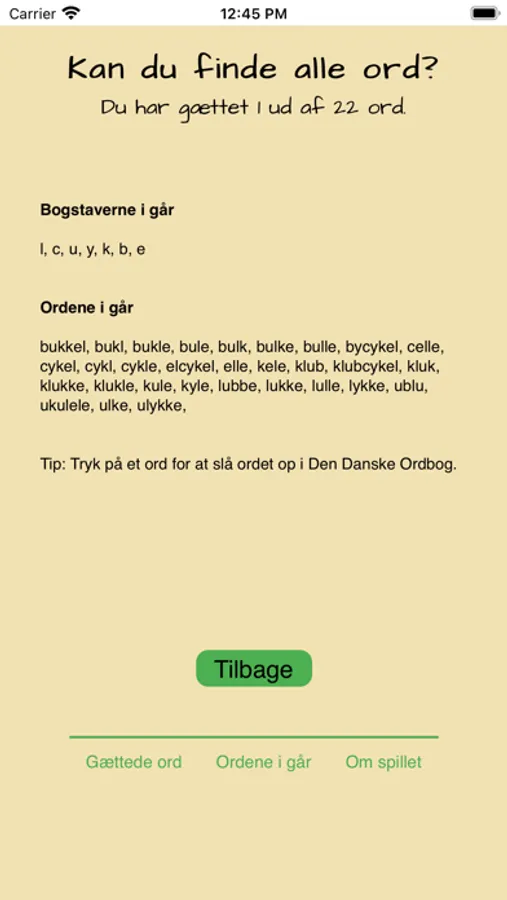 Din opgave er at finde alle danske ord, der kan skrives med de syv bogstaver, men: