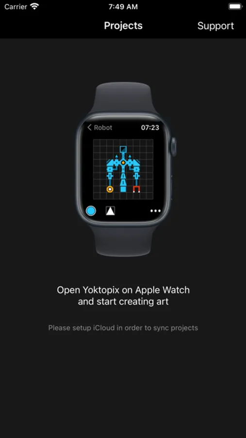 Aftercompute AB proudly present Yoktopix - an art making tool for Apple Watch. Yes, you can now create digital paintings on your wrist. Then sync your projects to your iPhone and export the images in high resolution or show your art on the wall or on the floor with Augmented Reality.