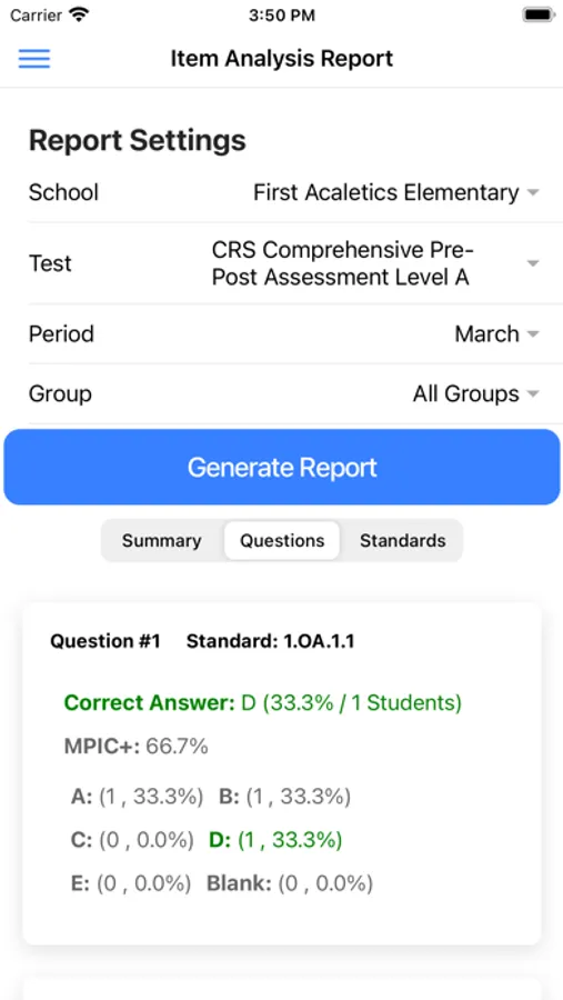 Reporting app for ACALETICS Learning Platform