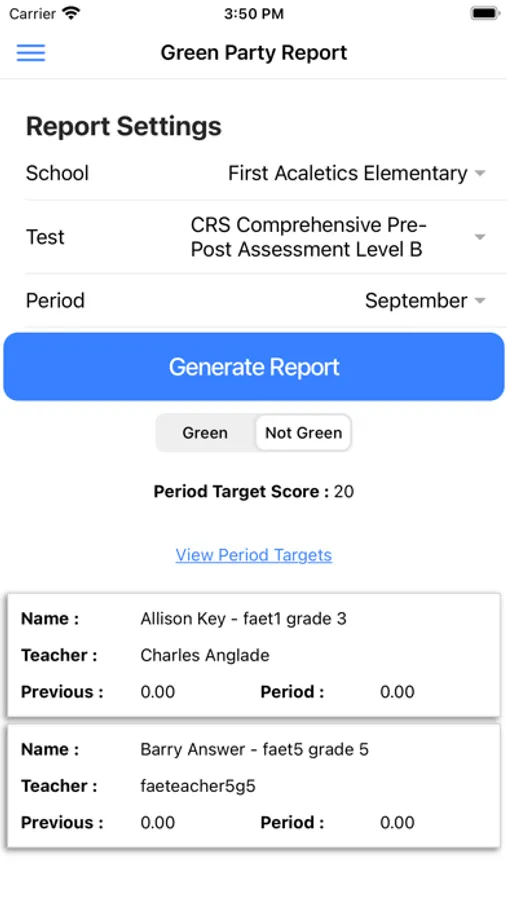 ACALETICS Reporting Screenshots