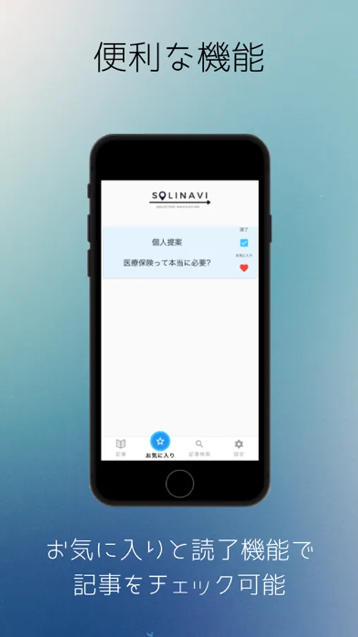 お気に入り登録 - 特に気に入った記事はお気に入り登録することで、お気に入り画面から記事を表示し、いつでも簡単に読み返すことができます。