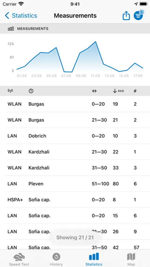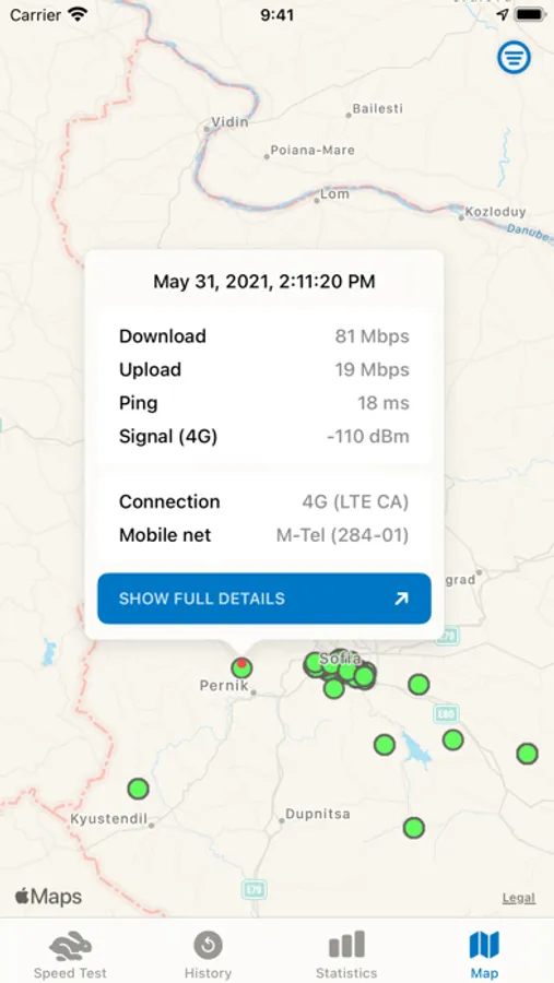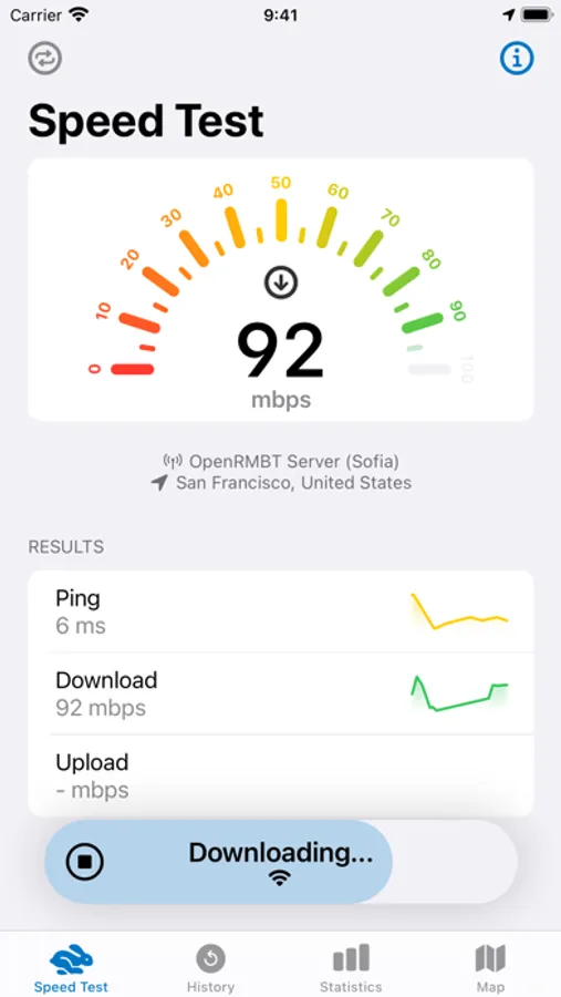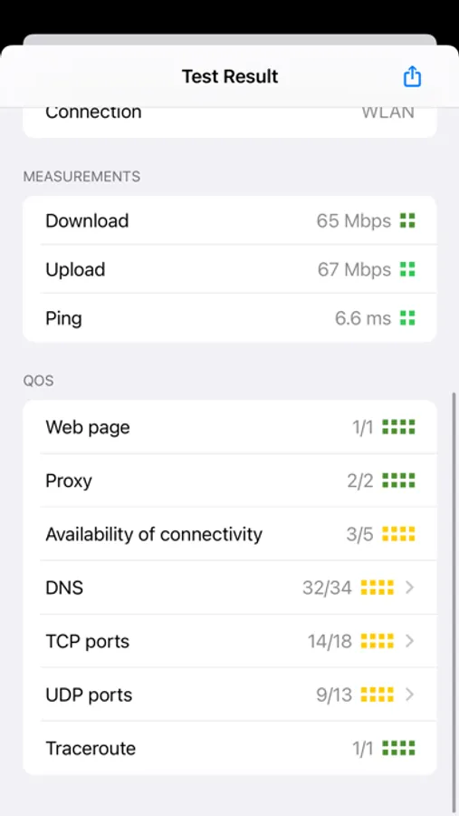The Network Quality app informs users about the current service quality (including upload, download, ping, signal strength) of their Internet connection. In addition, a map view and statistics of previous tests can be accessed. For technically interested users the iOS App offer an optional loop-mode, which enables automatically repeated Network quality test.