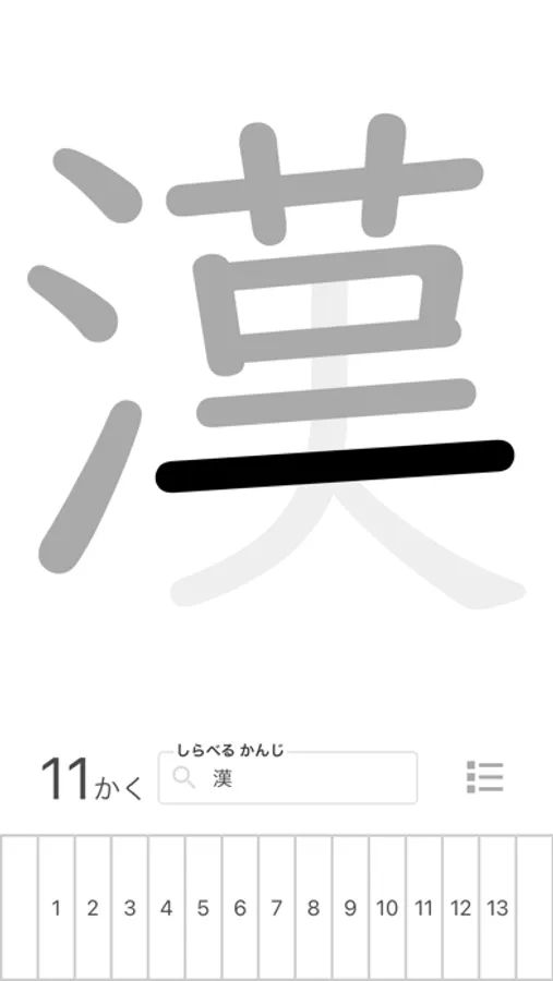 画面下に表示された数字を触るとその筆順に応じて表示されます。