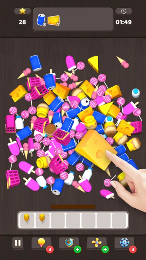 Blow your mind to find and match identical target 3D objects to make them pop among a tangled mess.
