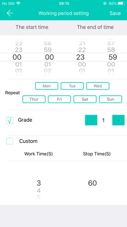 -Bluetooth controlling, including working hours, week, levels