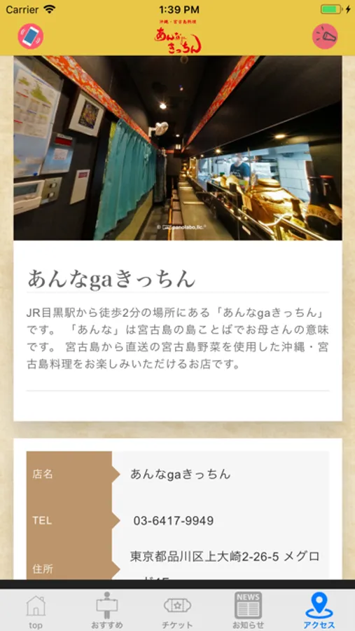 宮古島料理アプリは、東京都品川区上大崎にある沖縄・宮古島料理「あんなgaきっちん」の公式アプリです。